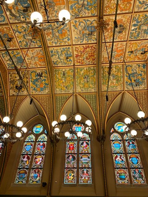 Wij bekeken de pas gerestaureerde Statenzaal, in neo-gotische stijl gebouwd. Wij beluisterden dat in totaal zestig ‘Frieslanden’ bestaan. ‘Hoe zo “Frieslanden”‘, vraag ik. ‘Daarmee bedoelen wij ’taal-uniforme regio’s’.